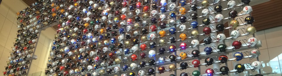 After entering your information into the computers, you are greeted by a three story wall of helmets from each college football team. The Hall of Fame recommends starting at the third floor, which houses the actual hall of fame. Computers in the hall allow you to access stats, photos, and videos of all the players and coaches in the hall.