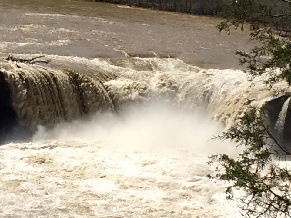 Although the campsite lacked in charm and nature, we had a fantastic time hiking and seeing both Cumberland Falls, as well as Eagle Falls. We started at trail 9 and from there did the Gorge Overlook, which allows you to get another view of the falls, and then also broke off and did the Eagle Falls Trail loop. The first half of the the trail was filled with stunning views of the waterfall, which seems appropriately deemed the “Niagara Falls of the South.” The Gorge Overlooks is extremely steep, but luckily it is short in length to the top where visitors can get additional views of Cumberland Falls. We continued back onto trail 9 and experienced the bluffs and water drops forming puddles in our pathways. Next we took the Eagle Falls Trail loop that brought us to an incredible waterfall, however, getting there was not easy as the trail was flooded out. We had to follow a makeshift path created by others that involved hugging one of the bluffs. The waterfall was absolutely stunning and the water was a beautiful blue green.