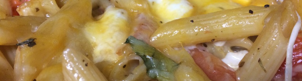First start by bringing water to a boil and cooking the pasta. As the pasta cooks, mince 4 garlic coves, chop the mozzarella ball into small pieces, cut up one package of cherry or roma tomatoes, and chop 1/2 cup to 1 cup of fresh basil; then place them into a bowl. Then preheat the oven to 350 degrees. Once the pasta is done, stir everything together and add olive oil until it coats the pasta. Then sprinkle oregano, parsley, pepper, and thyme to taste. Next, add the balsamic vinegar and place into a pan. We used a strawberry balsamic vinegar that added an extra fresh flavor. Finally sprinkle mozzarella cheese on top of the pasta caprese. Bake for about 8-10 minutes (or perhaps longer based on your stove), until the cheese has melted in ever so slightly. Then you are left with a delicious, tasty pasta dish that we found both refreshing and hearty!