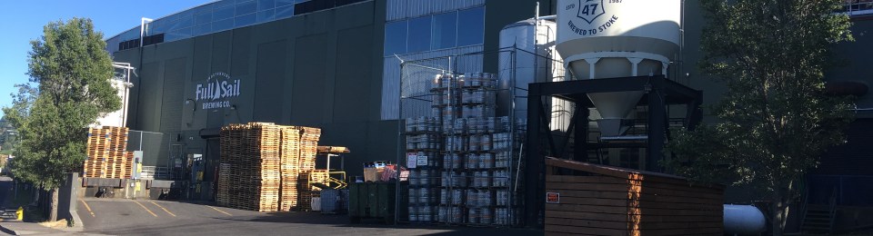 Although Portland gets lots of attention, there are lots of breweries all over Oregon. Full Sail Brewing is located about an hour east of Portland along the Columbia River in Hood River. The setting is quite lovely, with the brewery occupying an elevated area that overlooks the river in the distance. This particular area of the Columbia is famous for windsurfing, so you can spot lots of colorful sails dotting the river. The brewery is a large complex as Full Sail makes and distributes both a large amount of and a wide variety of beer. However, the tasting room offers a nice environment that belies the enormity of the brewing facility. There is nice brick in the tasting room, with warm wooden chairs and tables and large windows on the side facing the river.