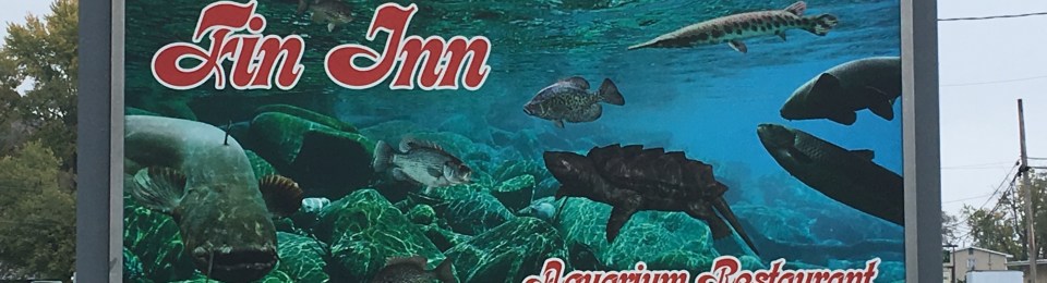 Located just north of St. Louis is the Fin Inn in Grafton, IL. Margaret grew up going to Peru Marquette Lodge and State Park with her family, and they often visited the Fin Inn during their trips. The Fin Inn is only a short drive from the lodge and state park, making it ideal for a fun meal out. The restaurant is set back from the road, in a unique stone structure with large windows. Inside the decor is simple because the focal point is the aquarium tanks filled with fish and turtles.