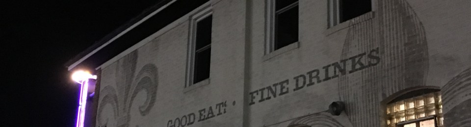 The Royale Food & Spirits is located right off of Kingshighway along the corner just a block away from Tower Grove Park. Visitors can find The Royale by searching for the large painted fleur-de-lis or bright purple neon sign. The building itself is a two-story brick-painted building with a small seating area in the back. Inside the room there is muted multi-color walls, a tin ceiling, and low-lighting. The bar is situated at the center of the restaurant and serves as the focal feature of the room, while there are booths around the outside of the room.