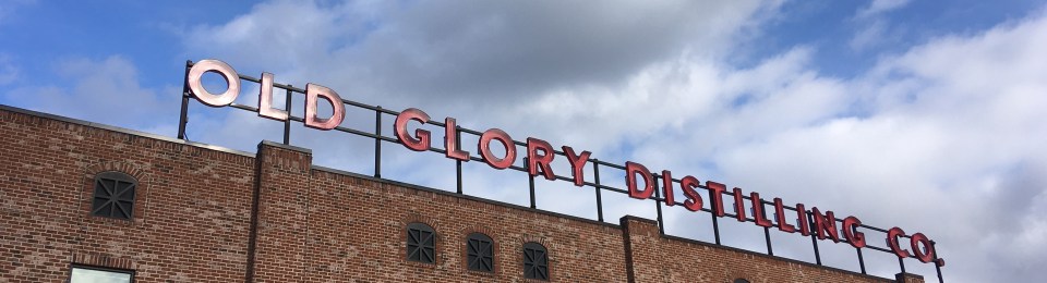 Since it first began to be constructed, we have driven by Old Glory Distilling Co. and wanted to visit Old Glory Distilling Co. Recently, we finally had the pleasure of visiting the distillery. The distillery is right off of the highway in Clarksville, TN making it an easy place to stop off at for those traveling on I-24. It is located in a new multi-story brick building with a bright neon sign above the building. Inside the decor features warm colors, repurposed barrels, and dark wood accents.