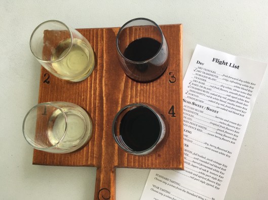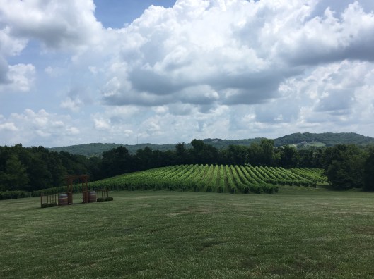 Noboleis Vineyards is located amidst the rolling hills north of the Missouri River along Missouri’s Weinstraße just outside of Augusta. Rows of grape vines radiate from the winery’s tasting room and event space. The tasting room is a rather plain, one-story structure with yellow siding and a red roof. Inside, there are a few wine-related accessories and Noboleis bottles for purchase as you walk in, leading to a simple bar area where servers provide wine tastings and pours. We were able to purchase a wine flight, which we took outside to a large event space, enjoying our wine in a tent overlooking some of Noboleis’s vineyards.