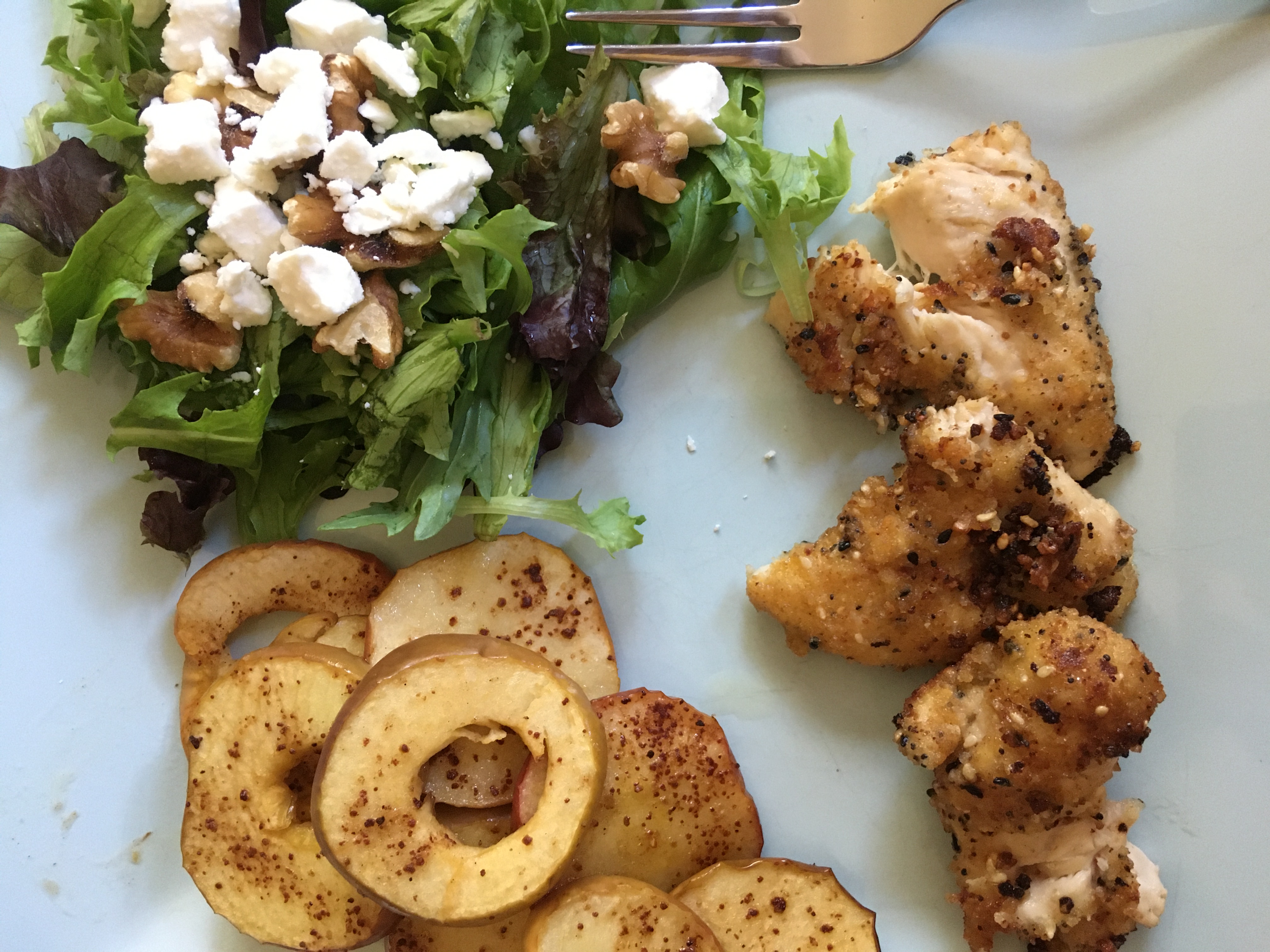 Side Note: The chicken paired well a salad and apple crisp chips.