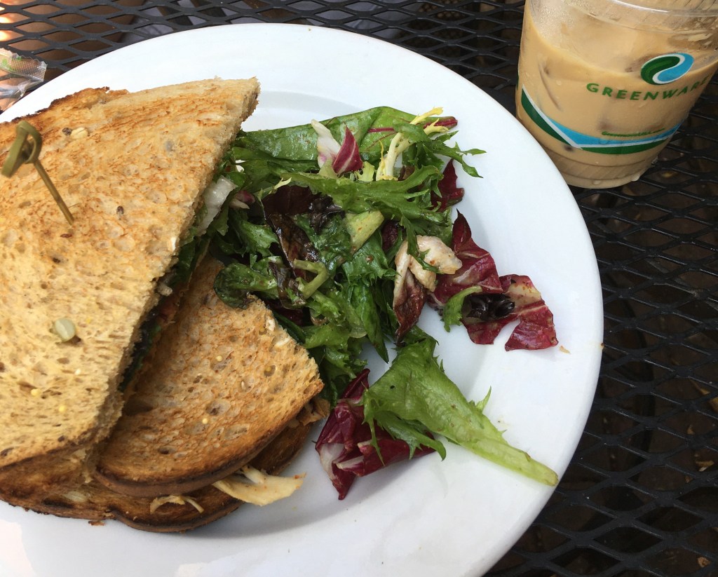 The menu is centered around breakfast and cafe-style food with egg dishes, sandwiches, and salads. Additionally, they have as assortment of tasty coffee and tea drinks. When we visited we split the club sandwich and an iced latte, which were both delicious! The sandwich was savory, filling, and well-made, the latte was refreshing and full of great flavor. When we visited it was a warm day out so we sat outside on the patio under a tree and enjoyed our meal in a lovely setting. Afterwards, we finished our drink as we strolled along Cherokee street and read the historic placards about the people and places that once were.