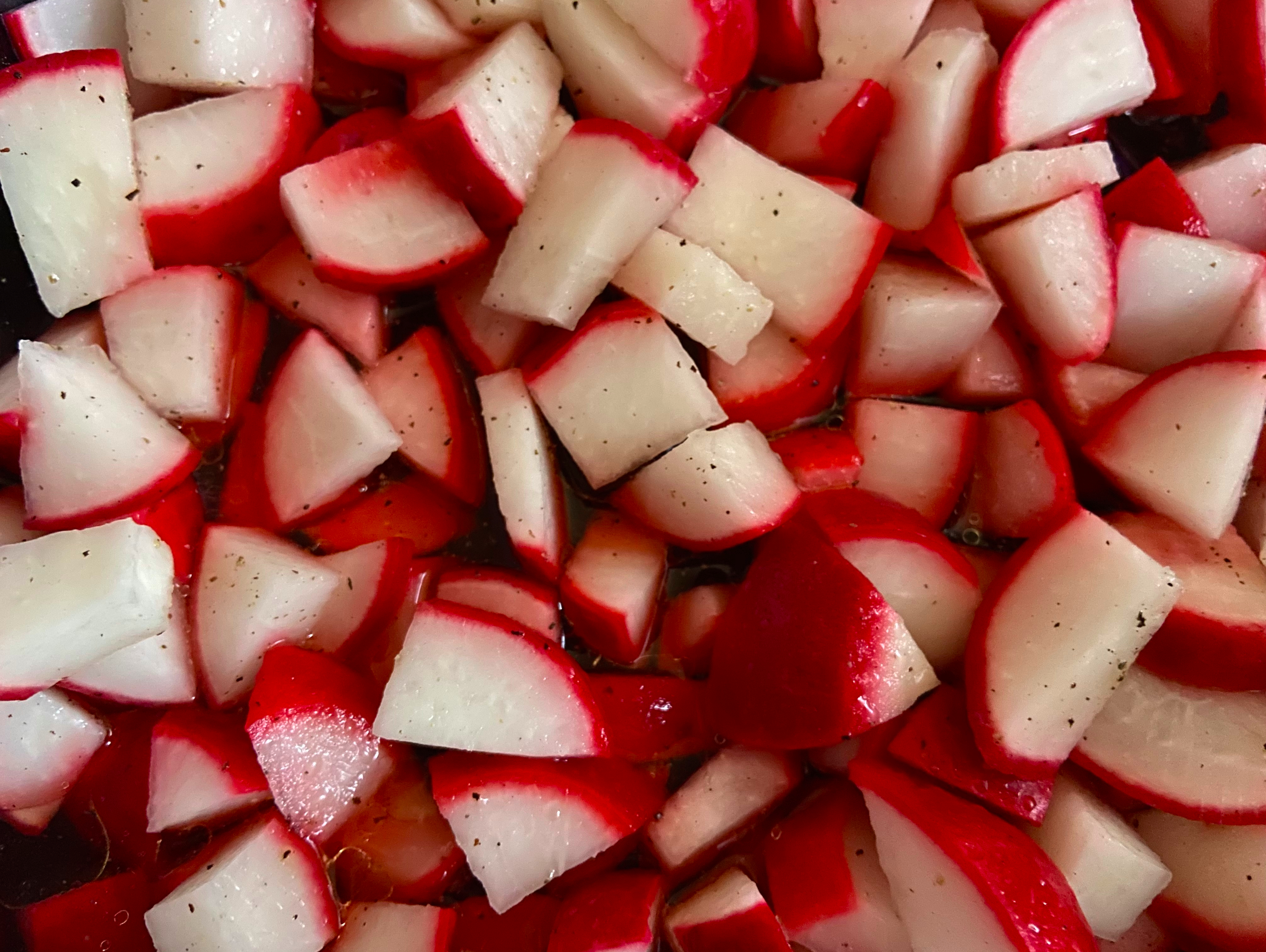 If you are looking for a super easy and colorful little side dish – this radish side is perfect!