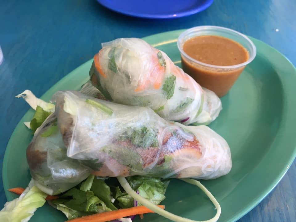 Lona’s Lil Eats is known for their rice paper wraps, but also feature an assortment dishes highlighting Chinese and Thai flavors. Additionally, there is a variety of vegetarian and vegan options, providing a nice array of options for visitors. When we visited we ordered the fresh spring rolls and the big Thai wrap. The flavors were good and the rice paper wraps were interesting. It was unique to see the food inside and the texture was quite chewy, unlike anything we had ever had before. We both thought the flavors were the best part and enjoyed trying Lona’s Lil Eats!
