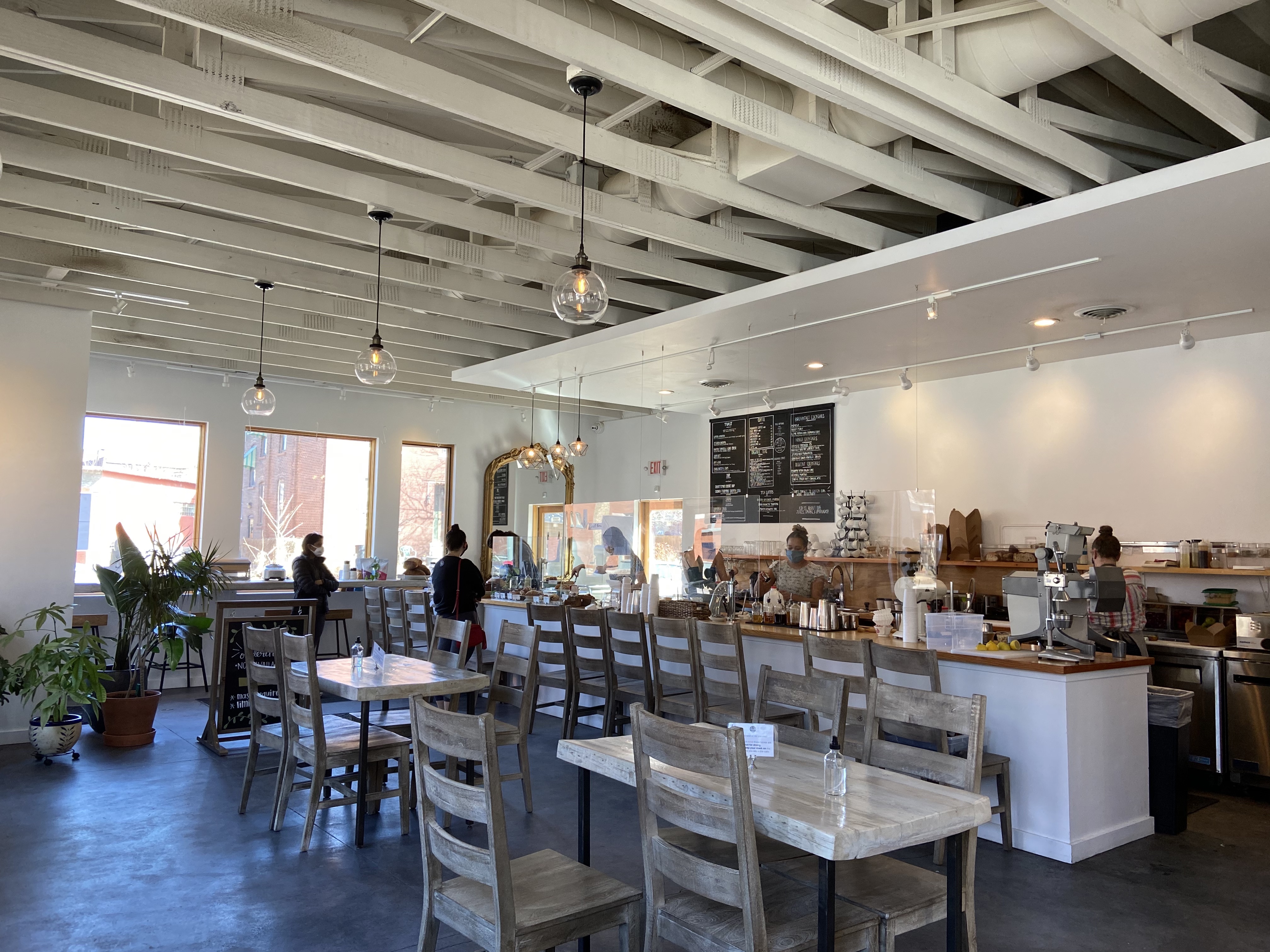 A sweet little cafe that we recently had the pleasure of trying is Fiddlehead Fern Cafe. The cafe is situated on the corner of Russell and Thurman in the Shaw neighborhood in a modern looking building. There are a couple of tables in the front and then a large patio filled with tables to the side of the building. Inside the space is fresh and airy with tall ceilings, large windows that allow light to pour through, and a plethora of plants scattered throughout. The entire left side of the space is covered with a large counter that is filled with baked goods.