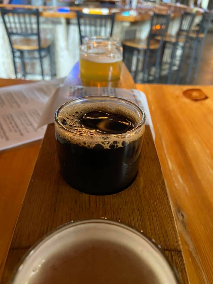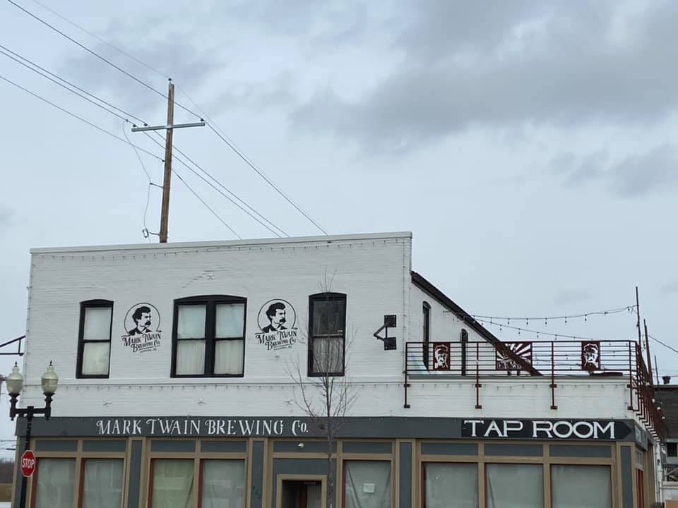 First, we started at Mark Twain Brewing Company, which is a brewery and restaurant. Mark Twain Brewing is located in a large facility that looks like a variety of buildings patched together to create a unique space. There are a couple of spaces for dining, as well as a bar, and a separate event space. Additionally, there is a large outdoor patio on the second floor, providing a nice view of the river and the downtown strip. Mark Twain Brewing offers take-out, so you are able to safely get a bite to eat. When we visited we had planned on getting take-out, but discovered we got there right when it opened, so we were the only people at the brewery and restaurant and decided to stay until more people came. Fortunately, we were able to enjoy a nice meal and a flight before anyone else had arrived.