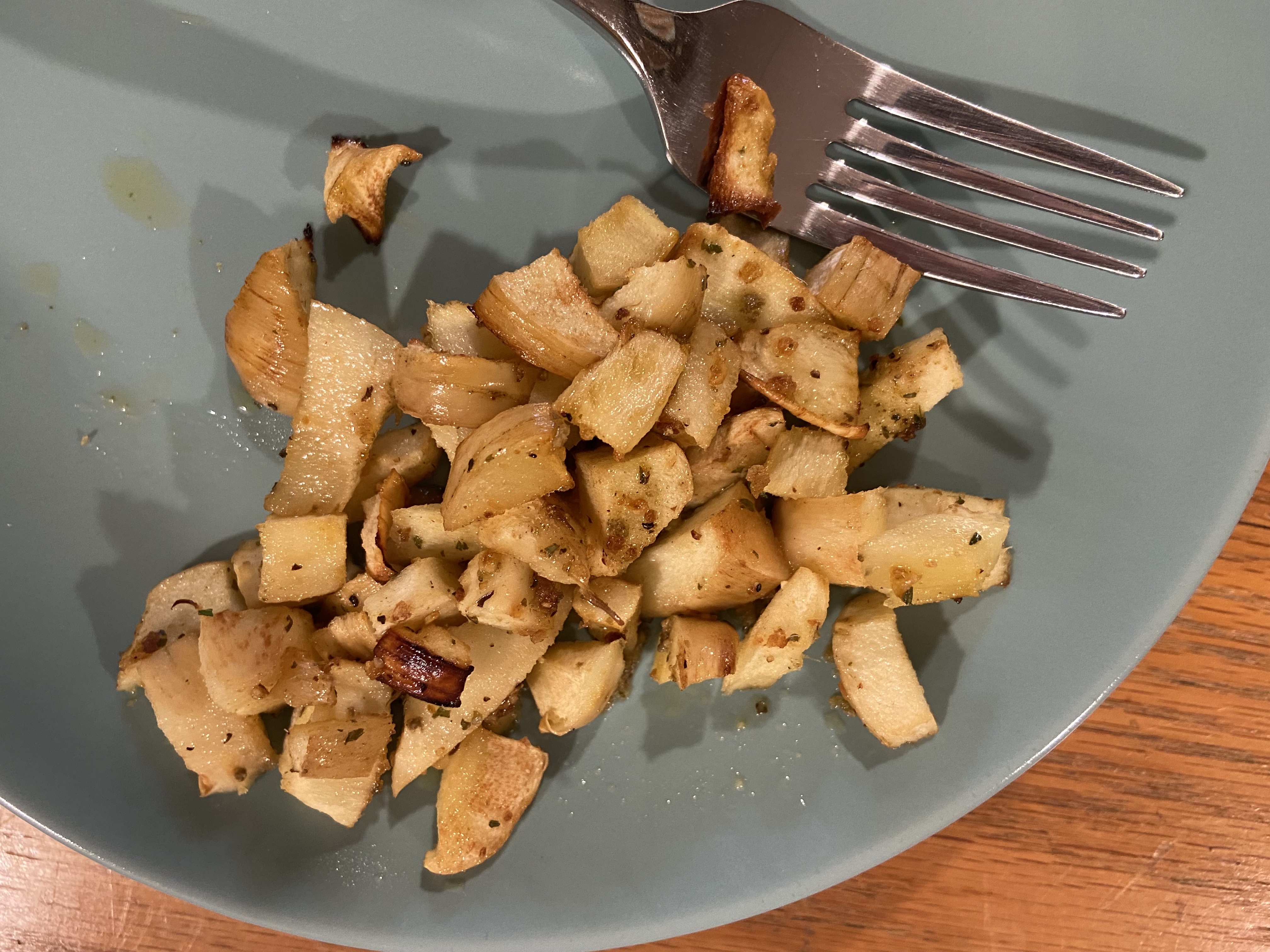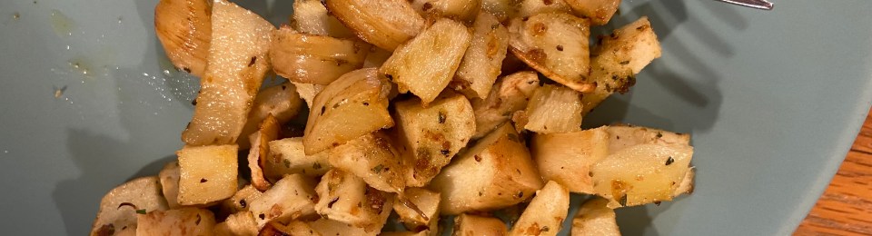 Begin by preheating the oven to 425 degrees. While the oven is heating up, chop up the parsnips and lay on a baking sheet. Drizzle olive oil and lemon on the parsnips and sprinkle with seasoning of your choice. We often use the Nantucket Herb & Citrus Rub for our roasted root veggies that give them a delicious taste. Bake the parsnips for around 25 minutes depending on your oven and your texture preferences. Afterwards we have a flavorful side dish that went perfect with Toasted Ravioli.