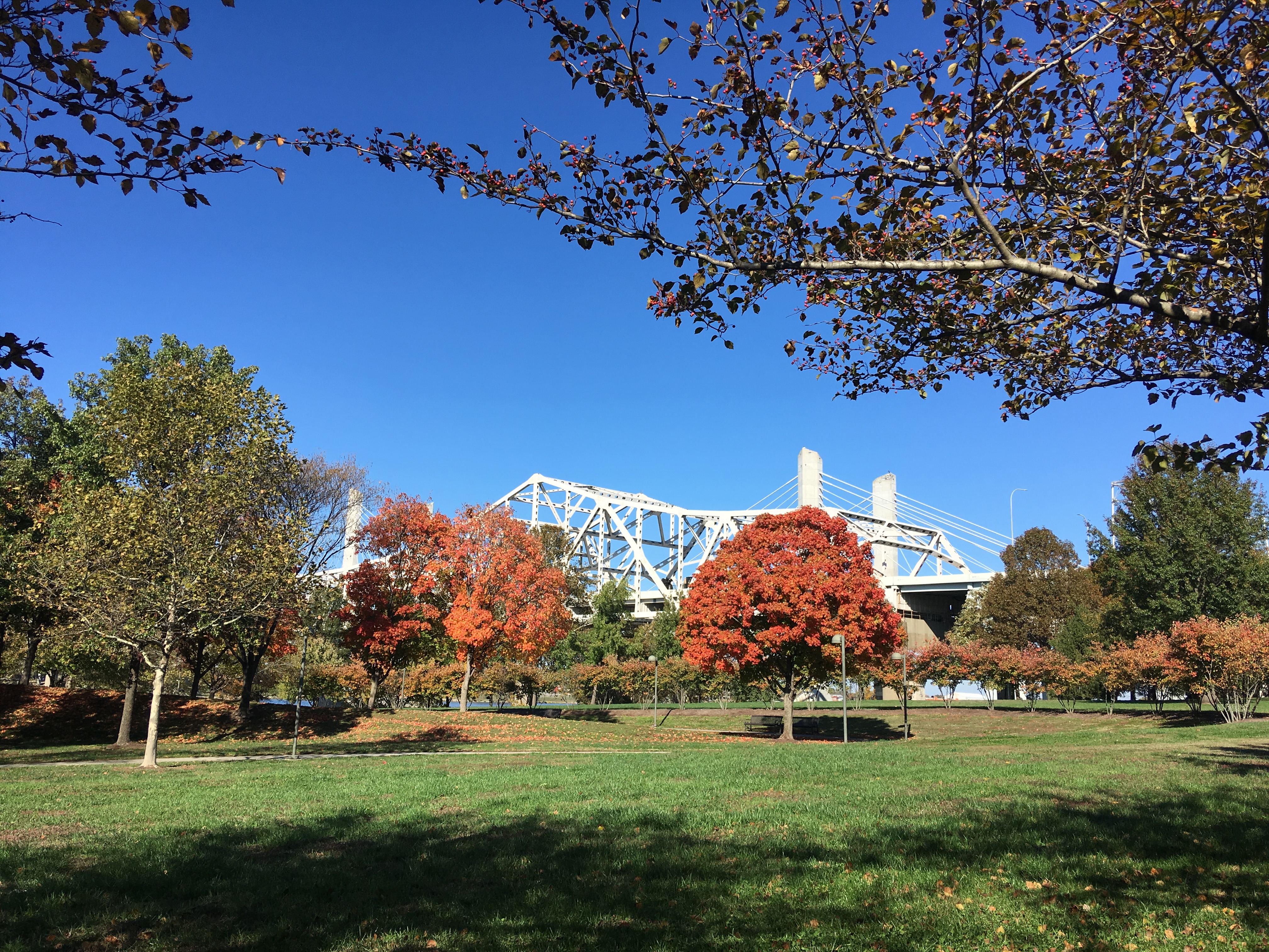 Since the Ohio River runs through Louisville, there is an assortment of parks lining the riverbanks throughout the city. While on our way to visit family, we stopped off at Waterfront Park in downtown Louisville. The park is made up of several small parks to create a large riverfront park that is connected through trails, including a pedestrian bridge into Indiana, making it a great place to start a walk/run/bike ride. Waterfront Park offers playgrounds, boat docks, art work, trails, large green spaces, an amphitheater, and nice river views. Additionally, throughout the year the park has an assortment of events, ensuring visitors have a variety of activities to engage with. The park continues to be developed and trails will eventually connect the park to the local steamboat, Belle of Louisville, that visitors can hop on and explore the city further on. When we visited we were some of the only people at the park, allowing us to get a restful break from the car ride. We walked along the trails and enjoyed the views of the bridge and some bird watching. The park was well-paved, making it more accessible for visitors. Additionally the park was easy to get to off the highway, making for a great stopping point along the way from St. Louis to Virginia.