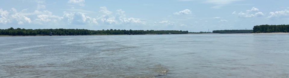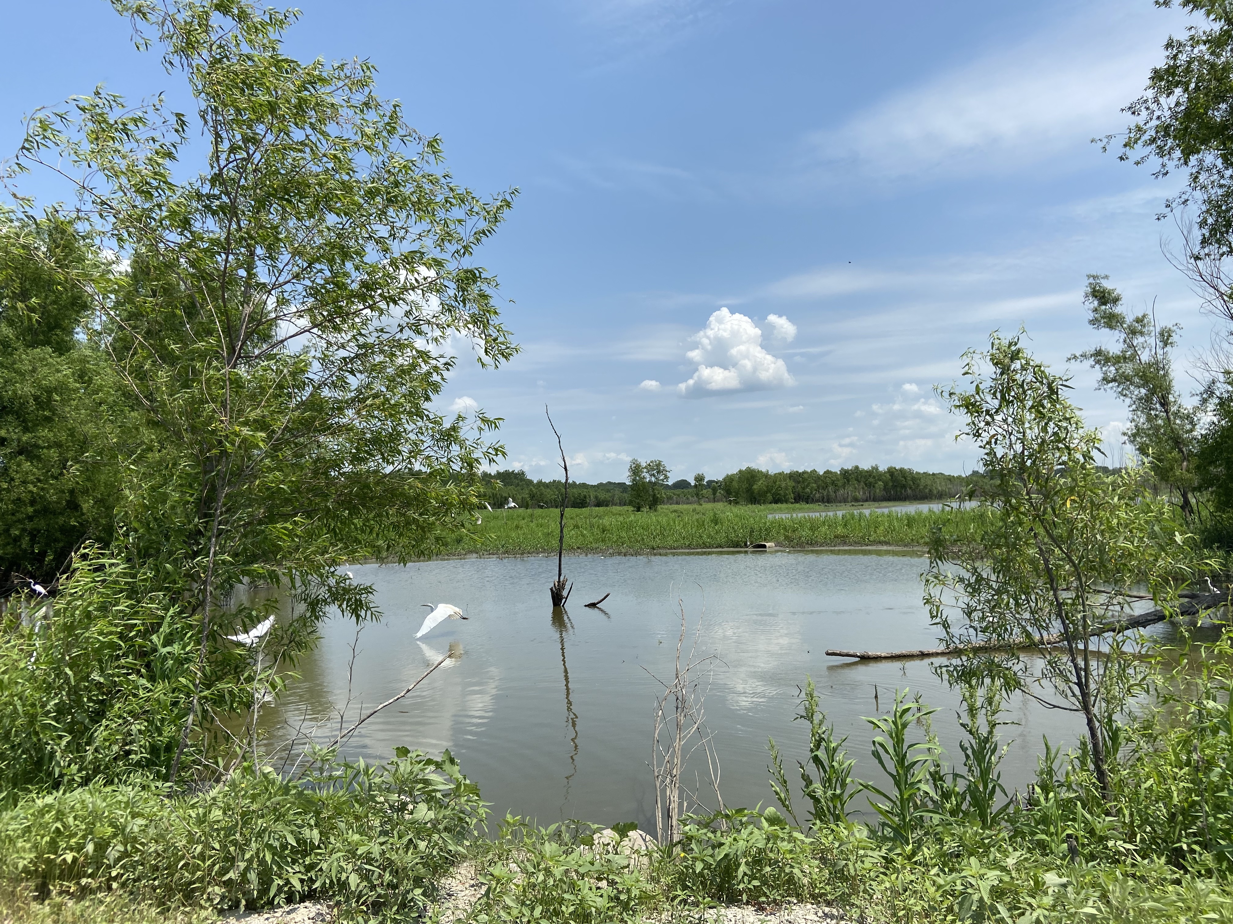 A small, but unique Missouri state park is the Edward “Ted” and Pat Jones-Confluence Point State Park. The park is seated at the intersection of the Missouri and Mississippi Rivers. For several years the park was closed due to flooding, but has finally reopened. The park is the last possible stop before heading over the bridge to Alton, Il and involves driving down a gravel road for several miles. Upon arriving there is a small parking lot, a shelter with some information on the area and the park, and a short trail leading to the confluence. Visitors will probably spend more time driving to the state park than they will at it, but we definitely recommend taking the drive. The drive there has lots of shallow waterways that were filled with egrets when we visited, providing a nice vantage point of the life along the flood plains. Additionally, the walk to the confluence is short, making for an easy little trip; however, the views are quite impressive. Seeing the Mighty Mississippi meet the Big Muddy Missouri is an incredible view! The two rivers converge together and you can actually see the different colors meeting and churning. We definitely recommend recommend a visit if you are able to see the two powerful rivers meeting.