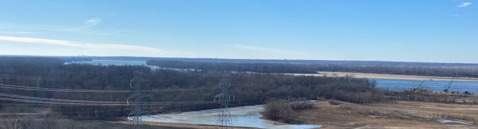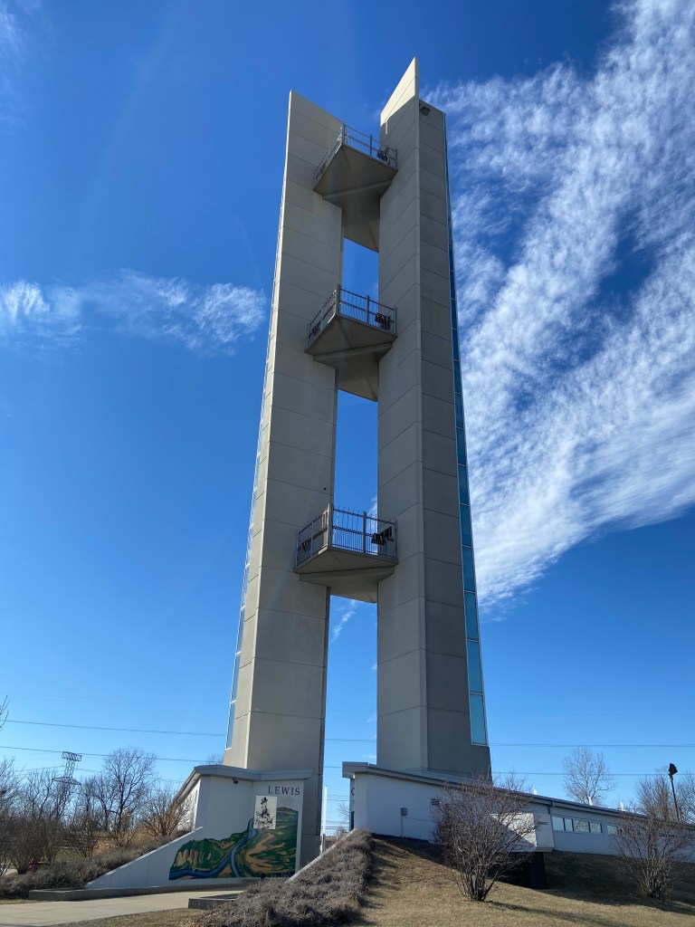 Recently, while on a drive along the river, we stopped at the Lewis & Clark Confluence Tower in Hartford, IL. The tower is part of the Lewis and Clark Historical Trail, making it part of the National Park system. We decided to stop off and take a trip to the top. The views are extensive and truly provide you the opportunity to see how expansive the flood plains are naturally. The top of the tower also affords a view of the place where the two largest rivers in North America meet – the Missouri and the Mississippi. The stop off takes only 10-15 minutes, making it an easy and fun point along the Great River Road.