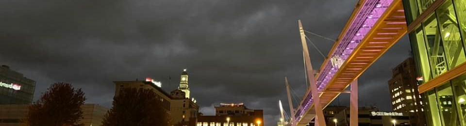 A quirky and fun little detour in the Quad Cities is the Davenport Sky Bridge. During the day the bridge provides expansive views of the Quad Cities, as well as the Mighty Mississippi. In the evening the bridge is transformed with an assortment of colors into a living kaleidoscope. Additionally the bridge provides a form of passage over the main road running alongside the river. The Davenport Sky Bridge is a great backdrop for photos,but also a unique landmark to explore for those in the Quad Cities area. Each time someone new comes to the Quad Cities the Davenport Sky Bridge is a must for a fun little detour to explore the city.