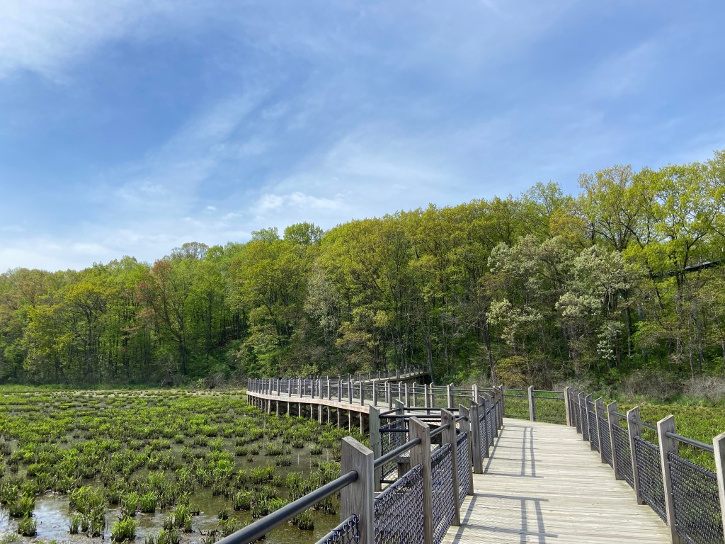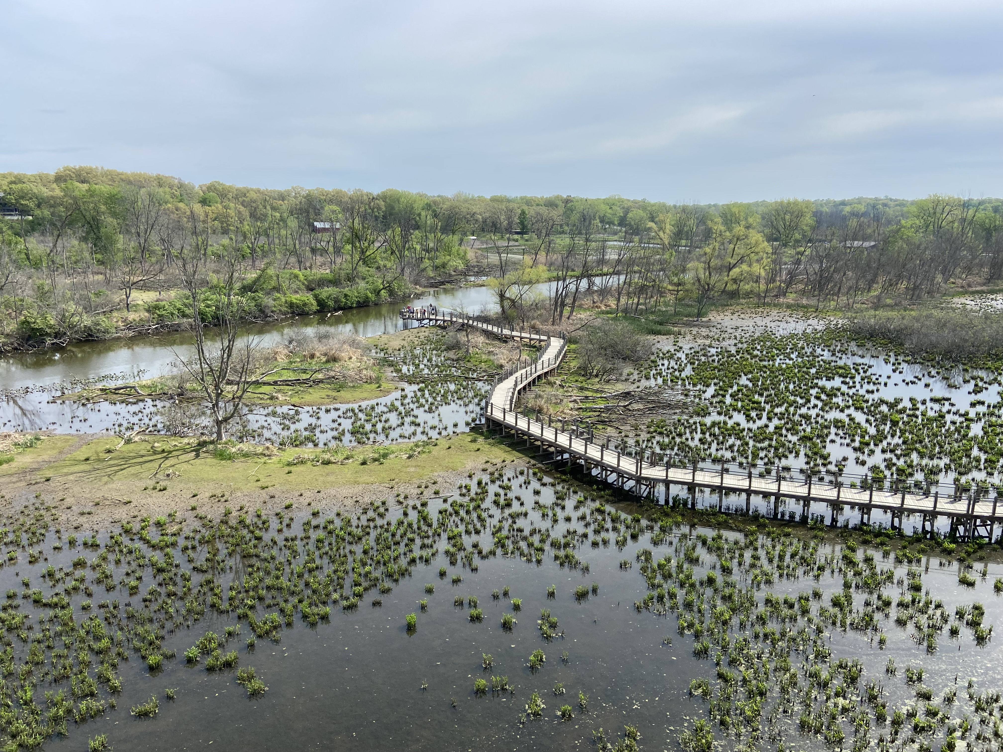 The boardwalk winds its way through the wetlands, allowing visitors to see it up close. We were able to see several birds and small mammals living in the wetlands as we walked along the boardwalk.