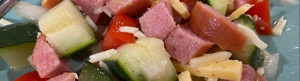 The following day boil the knackwurst to cook it. While the knackwurst is cooking, chop up the tomatoes. We recommend 1-2 medium-sized tomatoes or a container of small tomatoes, such as heirloom or roma, based on your preference and availability. Next chop up your preferred cheese and add the tomatoes and cheese to the cucumber salad. Once the knackwurst is cooked, chop up the wurst into smaller pieces and add to the cucumber salad as well. Make sure you include the juices from the knackwurst that may have come out while you were chopping up the meat for some additional flavor. Drizzle a little apple cider vinegar, and sprinkle with a dash of salt and pepper. Mix everything together and serve! The combination of the fresh tomatoes, cucumbers, and meat, along with the cheese, provides a delicious and flavorful meal that is ideal for summer time!