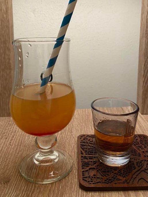 Combine 3 ounces each of pineapple juice and orange juice, along with 2 ounces of rum. Shake well. Pour into a glass, and then add lingonberry syrup to taste. The lingonberry syrup will settle to the bottom and create a lovely “sunset” effect.