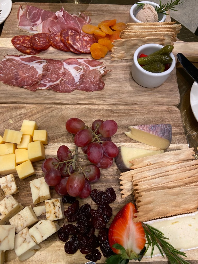 In the tasting room, the winery provides a number of different flight options, ranging from the feature flight with reserve and limited release wines to the more reserved tastings. We sampled four different wines from Chateau Ste. Michelle’s reserve and limited release collection–a sauvignon blanc, a chardonnay, a cabernet sauvignon, and a red blend–and afterward and enjoyed a few other wines that our server recommended and provided for us, including a malbec and a riesling that we enjoyed very much. After our flight, we shared a meat board and a cheese board, both of which were artfully prepared. For those wanting a little more substance, the winery offers a small menu of several other items, featuring artisanal ingredients. We also shared a bottle of vintage riesling, which was excellent.